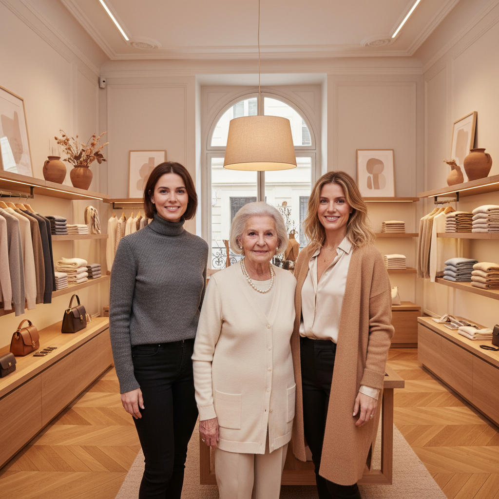Nous sommes Colette (74 ans), Élise (45 ans) et Camille (40 ans) — une mère et ses deux filles, qui ont construit ensemble cette boutique dès le premier jour, au cœur de Paris.